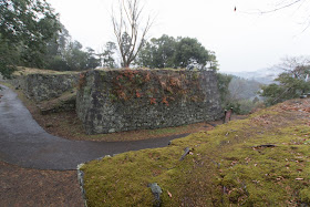 This middle part was built before 1600, and has a shape of typical mountain modern castles under Toyotomi government. Each area is protected by sheer stone walls, and both side of the part was securely protected by masugata gates (combined gate) built at bottle neck. Beautifully curved tall stone walls are directly built on the body of the hill, and horizontally raising stone walls is a picturesque and famous scenery of the castle.