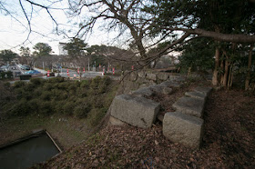 Now major part of tall stone walls of central area and front side water moat remains, and central area is used for a ground of shrine and museum of Arima clan. One castle gate is transferred at a temple about 10 kilometer apart from castle site. In the spring castle site is decorated with cherry blossoms, and it might be good to visit this castle to pray for promotion sharing good luck of past holders.
