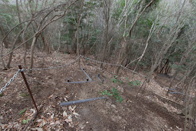 Secondary area is a small square shaped area at the south of central area, which is same to Umadashi buffer area at later castle. Third area is a narrow and long area of about 100 meter long and 20 meter wide, which has basement of buildings and two ruins of well. At the edge of this third area, there is a small basement of guarding turret, equips small stone walls and protected short cut route from hillside..