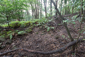 Southward of core area is a front side of the castle, and layers of terraces are built along with three ridges. Southeastern ridge is most carefully constructed with deep dry moat and combined gate, and this area might be the main gate of the castle even though current walkway directly climbs central ridge without passing southeastern ridge.